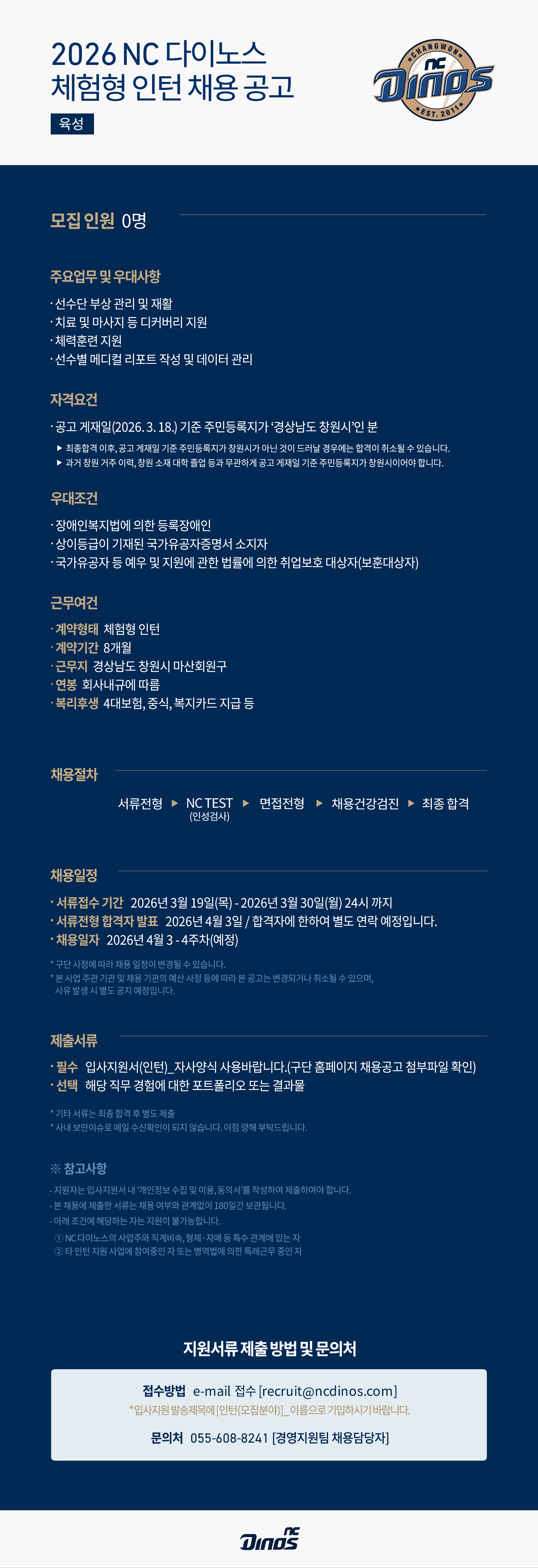 2026 NC 다이노스 체험형 인턴 채용 공고